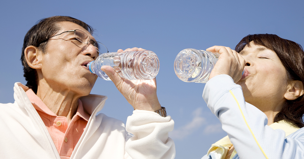 在炎熱的環境中,不論活動程度為何,都應隨時少量多次補充水分,不要等到口渴才補充。