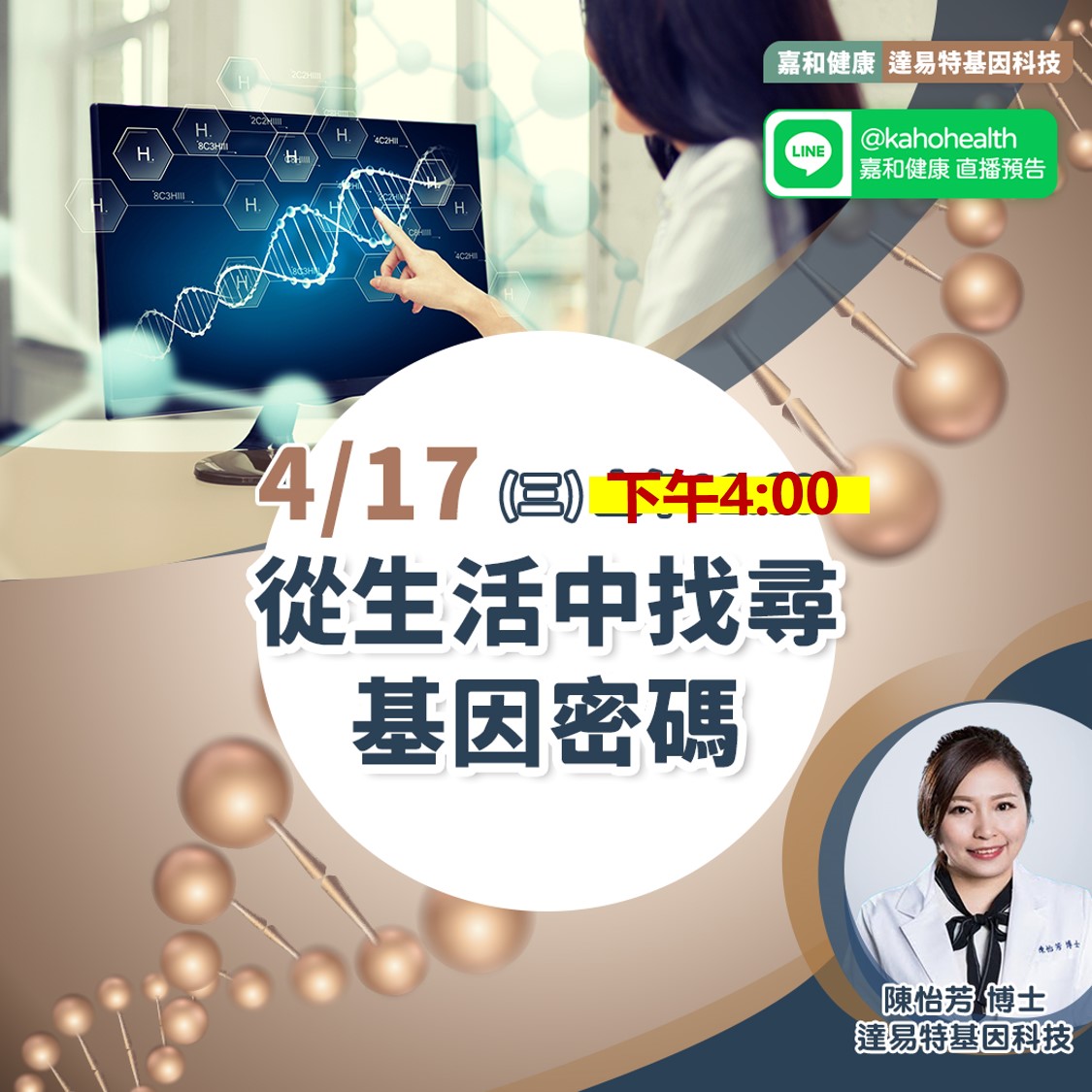 生活是一本複雜的書,而基因則是其中的一道神秘密碼。本週我們將與您一起揭開這本書的一頁,探索如何從生活中找尋基因的密碼,解讀自己的身體和心靈。專家將分享基因如何受到生活方式、環境因素以及情緒狀態的影響。並且從案例中探討生活中的種種因素如何與基因互動,影響我們的健康和幸福感。讓我們一起從生活中找尋基因的密碼,探索自己的身體和心靈的奧秘!