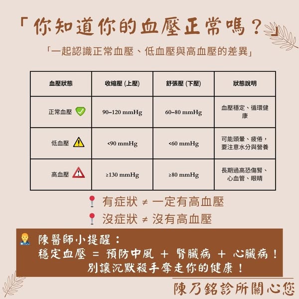 無論是高血壓還是低血壓,穩定的血壓都是健康的根基。與其等到出現併發症再處理,不如從日常生活中落實預防,包括規律生活、健康飲食、定期檢查及遵從醫囑。唯有持續自我觀察與調整,才能遠離慢性病的威脅,擁有長久穩定的健康。