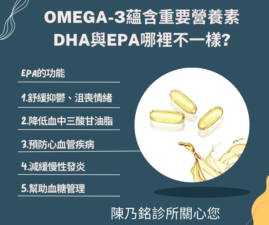 EPA主要是幫助調控膽固醇、抗發炎、促進血液循環順暢」,DHA為神經傳遞細胞成份,攝取DHA有助於「記憶力、大腦靈活思考」,所以在服用之前,您必須知道、思考您注重的是甚麼?如果您想要保持血液循環順暢。建議就以EPA為主的魚油。如果讓您頭腦記憶力清晰,就以DHA為主的健康食品。
