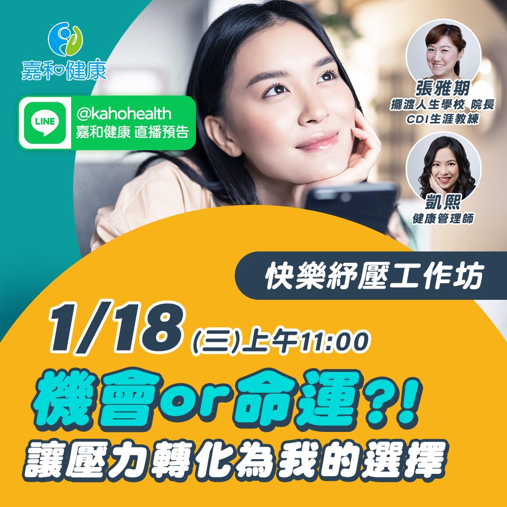 - 嘉和健康頻道「快樂紓壓工作坊」每週三上午11:00於Line官方帳號直播