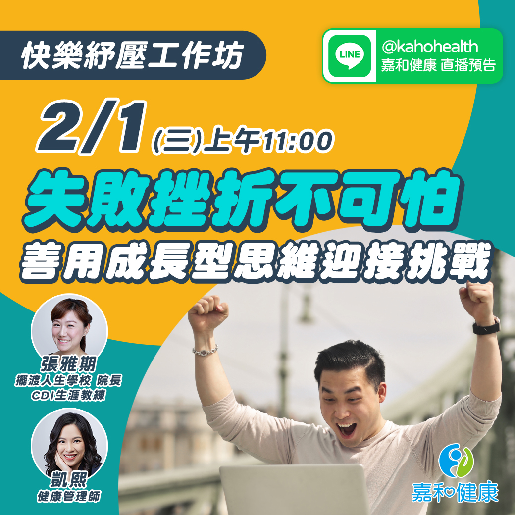 嘉和健康 【快樂紓壓工作坊】EP4失敗挫折不可怕,善用成長型思維迎接挑戰!